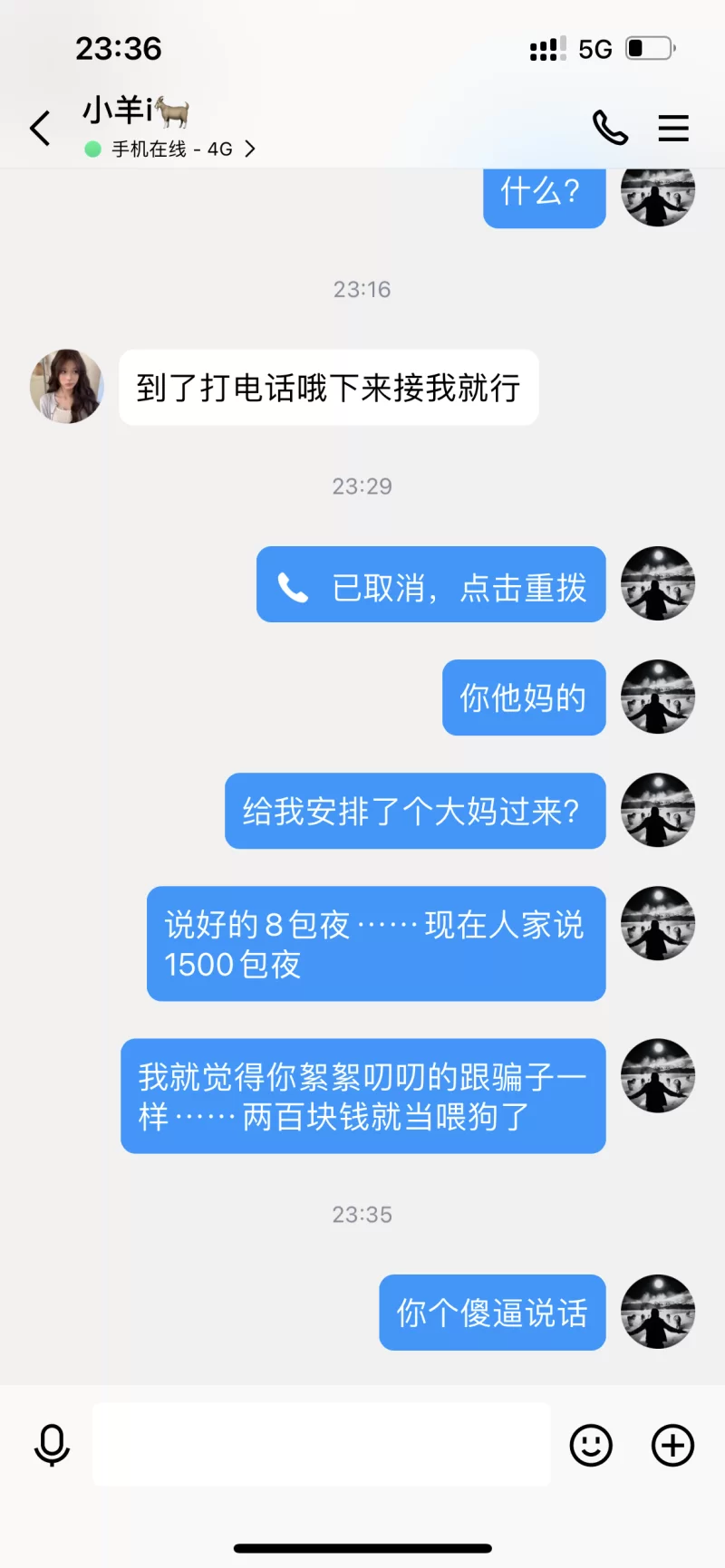 一个代聊骗子⋯⋯说自己接不到单让我找她,我说太远她说可以过来,找我要了定金,结果来的是个大妈不是本人,成都的兄弟们一定要注意⚠️ Qq多个7,要不然发不出去